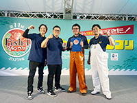 | 昨年12月のFish−1グランプリ表彰式後に記念撮影 (左から三浦氏、佐藤氏、後藤伸弥氏、 後藤新太郎氏) |  | | グランプリを受賞した「漁師が丸ごと包んだ!海の幸ごちそうタコス」 |  | | 人気が高いファンミーティングの様子 |