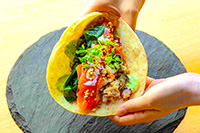 後藤(伸)氏は今後について「次のステージに来ている。我々が生産しているカキやギンザケなどにとどまらず、南三陸町で生産している野菜などを含めて、この町の魅力を発信していく。地元の企業とも積極的にコラボレーションしたい」という。すでに地元の水産加工会社と連携したコラボ商品も販売している。 佐藤氏は「南三陸町に移住してもらうのは簡単ではないが、遊びに来てくれる人を増やし、交流人口を増やすことで地域活性化に貢献したい。今後も地道な活動を続けていくだけ」と語る。 グループの活動に賛同してくれる企業も多く、ファンミーティングなどのイベント時に大手ビール会社も協賛してくれている。 戸倉SeaBoysのFish―1グランプリ出場は3回目。初出場の第9回大会(2023年)では戸倉産カキを使ったホットドッグ「戸倉っこかきドッグ」を出品し、惜しくも準グランプリとなった。24年開催の第10回大会で「〜漁師考案〜旨みたっぷりみやぎサーモンと牡蠣のバターピラフ」を出品し、念願のグランプリを受賞。昨年11月の第11回大会で2連覇を達成した。 グランプリを受賞した「漁師が丸ごと包んだ!海の幸ごちそうタコス」のレシピを開発したのは料理人の経験がある佐藤氏。 「今回は2連覇をめざして、『戸倉SeaBoys』の集大成となるメニューを開発した」とかなりの気合を入れてレシピを考えたという。 メンバー4人がそれぞれ生産するワカメやカキ、ギンザケ(みやぎサーモン)、タコ(志津川だこ)を素材に使うとともに、廃棄するメカブやカキ殻を肥料として有効活用して育てたケールやバジルをタコスのソースに使った。 グランプリ当日は、ファンミーティングなどに参加してくれた人などを含めて約100人の関係者が応援に駆け付けた。タコスを販売するキッチンカーの前で呼び込みをしてくれる人もいて、2連覇達成をサポートしてくれた。